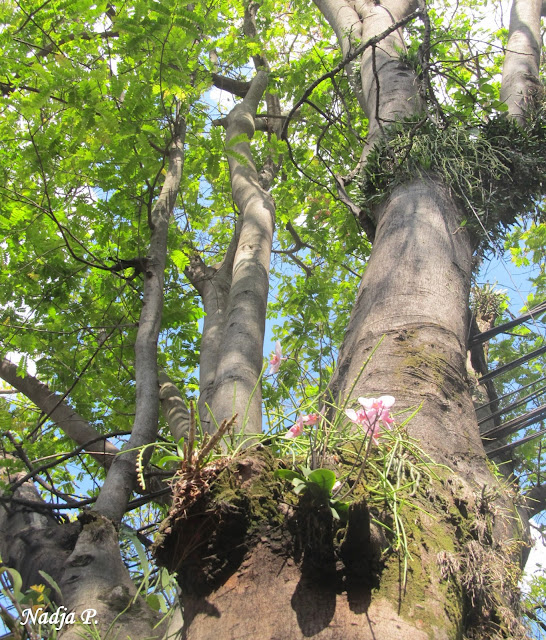 Numa tarde de primavera, semana passada, circulando por uma rua bucólica de minha cidade, fui clicar a frondosa árvore e acabei visualizando bem no alto do seu tronco a bela orquídea florida.