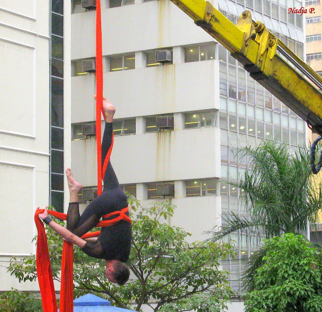 Grata surpresa quando vi um grupo de artistas circenses comemorando em um das praças de minha cidade!